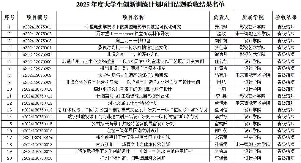 近日,河北省教育厅公布《2025年度国家级和省级大学生创新训练计划项目立项名单和结题验收结果的通知》(冀教高函〔2025〕56号)。经学校遴选、自主验收、申报及省教育厅审核,beat3652024年度立项的20个省级大学生创新训练计划项目全部顺利通过结题验收,2025年度新获批省级立项30项,立项数量与结题质量均实现稳步提升,彰显了beat365创新创业教育改革的扎实成效。大学生创新训练计划是教...