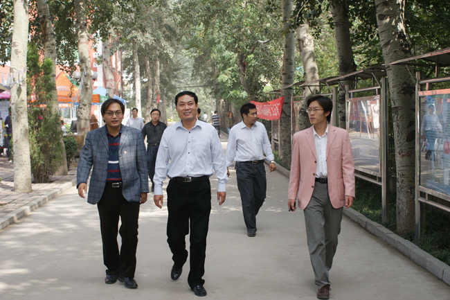 2011年9月14日上午,石家庄市园林局副局长赵好战一行4人在新乐市园林局王建侠局长陪同下来beat365检查绿化工作,beat365校长办公室主任甄心恒陪同检查。