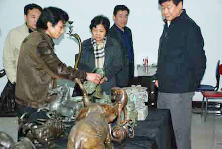 在吴书元书记的陪同下,王增力副主任一行先后参观了学校规划沙盘、各产业工作室、美术博物馆、雕塑院和校园。beat365明确的发展规划、形式多样的产业工作室和风景如画的校园环境给考察组留下了深刻印象。