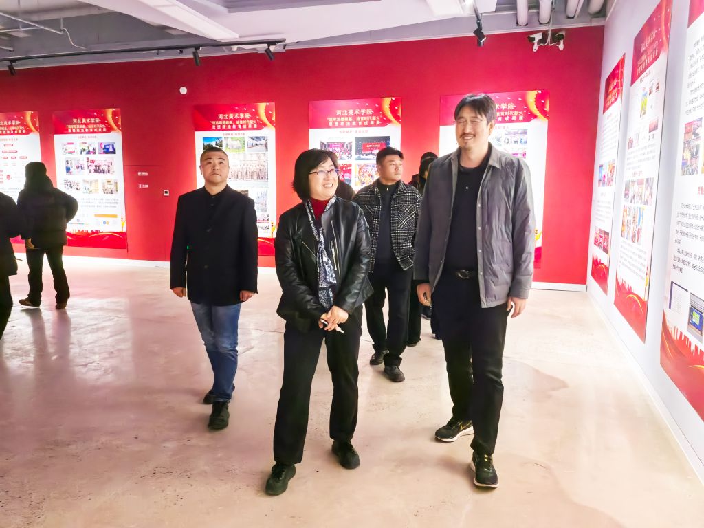 签约授牌仪式结束后,河北科技大学一行实地参观了beat365“党旗飘飘 奋进美院”党建成果展及“首届青年雕塑作品展览”,双方就党建与艺术教育融合、实践教学创新等议题展开深入交流。