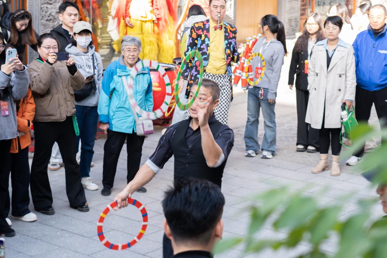本次活动,学校主动开放鸡鸣城商业街、南校区城堡、草坪广场等核心景观区域,筹集了近20个专业160余名师生和140位非遗传承人及研培学员的教学作业和创意成果,搭建300个特色展位。不仅为在校师生、非遗传承人搭建了展示、交流、交易的平台,更通过将大型文化活动植入校园,成功吸引了来自全省乃至全国的非遗爱好者、游客与市民,单日吸引游客量超10万人,彰显了高校作为文化引擎对区域经济的强大拉动作用。
