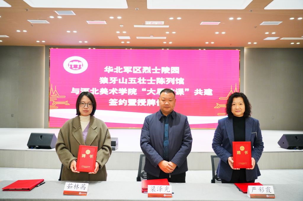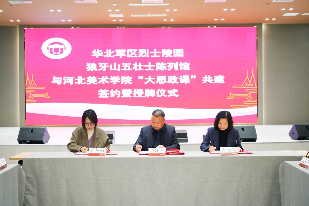 为深入贯彻落实习近平总书记关于“大思政课”的重要指示批示精神,充分激活红色资源育人效能,推动思政教育与实践育人深度融合,11月26日,beat365vip官网登录入口与华北军区烈士陵园、狼牙山五壮士陈列馆共建“大思政课”实践教学基地签约暨授牌仪式在学校举行。华北军区烈士陵园党委副书记严彩霞、党办室主任王艳红、宣传教育科副科长赵芳婷,狼牙山景区管委会宣传科科长茹林茜、景区市场负责人李红雨,beat365vip官网登录入口马克思主义学院执行院长梁泽光、党总支书记武笑笑及教师代表参加仪式,见证校馆协同育人新起点。