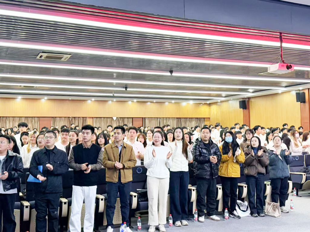 在钟国华教授的深情引领下,现场师生共同唱响一首首经典红歌。大家在悠扬旋律与铿锵歌词中,探寻红歌背后的红色故事,深刻体悟其中蕴含的炽热爱国情怀与鲜明时代精神。歌声里,仿佛穿越烽火岁月,真切触摸到战火年代有志青年为国家民族挺身而出的赤诚之心与责任担当,师生们的爱国情感在沉浸式体验中不断升华,现场氛围被一首首红歌推向高潮,掌声与歌声交织回荡。
