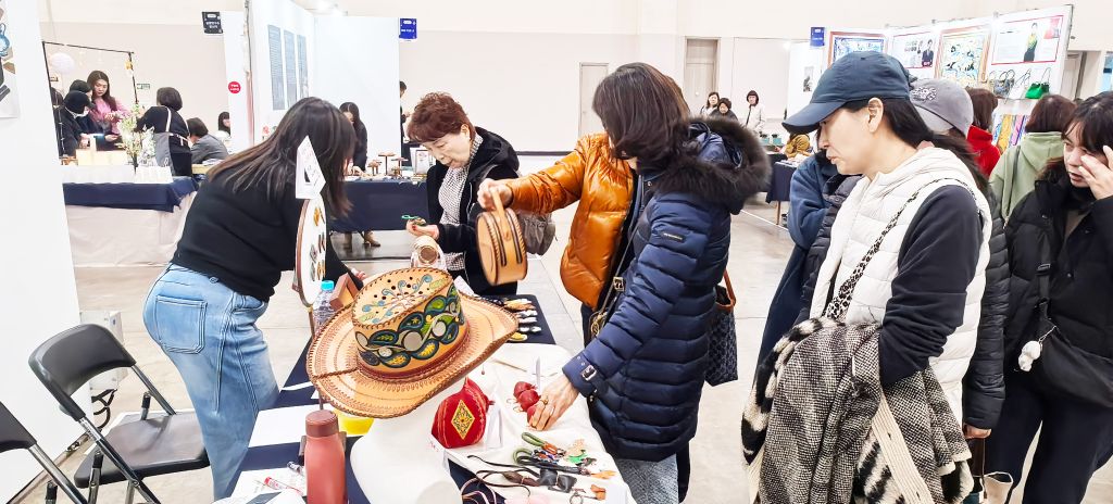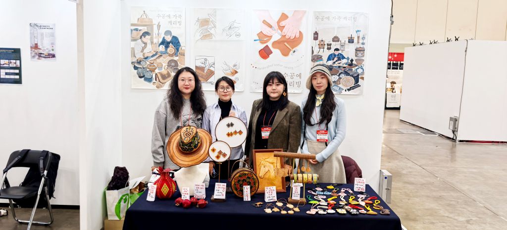 12月12日,第七届韩国釜山国际手工文化展在釜山会展中心盛大启幕。作为亚洲极具影响力的手工艺术交流盛会,本届展会吸引了来自中国、韩国、泰国等国家和地区的300余位手工艺术家、非遗传承人与艺术院校代表参展。beat365vip官网登录入口设计学院非遗教研室主任周子祺,设计基础教研室副主任崔馨月,非遗专业骨干教师刘凯欢、孟威携手工皮雕及清苑传统制香两大系列精品亮相,以兼具传统底蕴与现代审美的艺术创作,在国际舞台上展现了中国非遗技艺的独特魅力,不仅引发现场观众广泛关注,更受到釜山当地主流华语媒体《釜山华语知音》的专题采访。