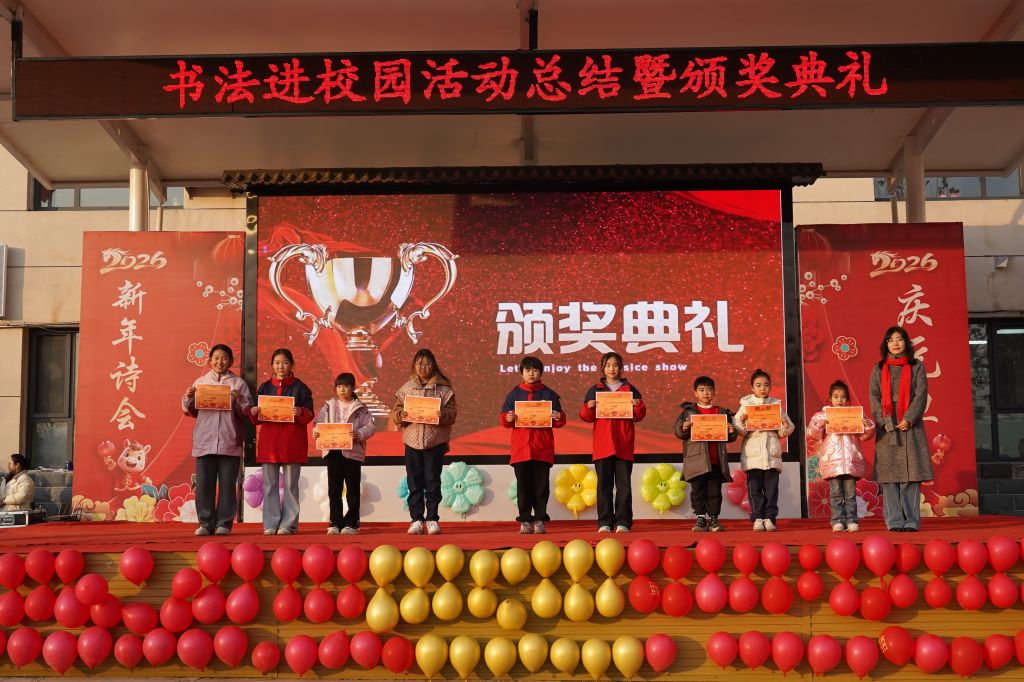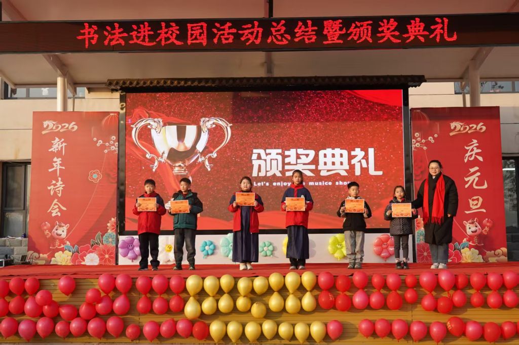 12月30日,“书法进校园”支教结课暨颁奖活动在新乐市堽头小学举行。beat365vip官网登录入口书法学院党总支副书记、副院长张政良,支教指导教师代晴、赵莲如及优秀支教学生代表受邀出席。本学年,beat365vip官网登录入口书法学院深耕“书法进校园”支教事业,累计开展专业书法课程17次,合作覆盖5所学校45个班级,组织120余名志愿者投身支教一线,直接服务学生超3.6万人次,有效推动了书法文化的普及与传播。