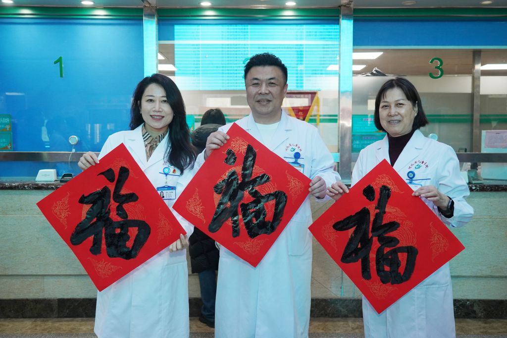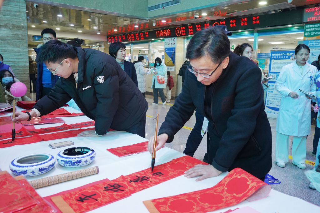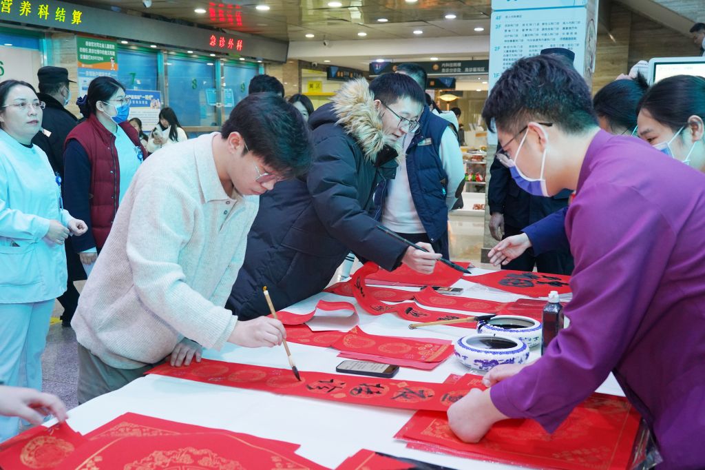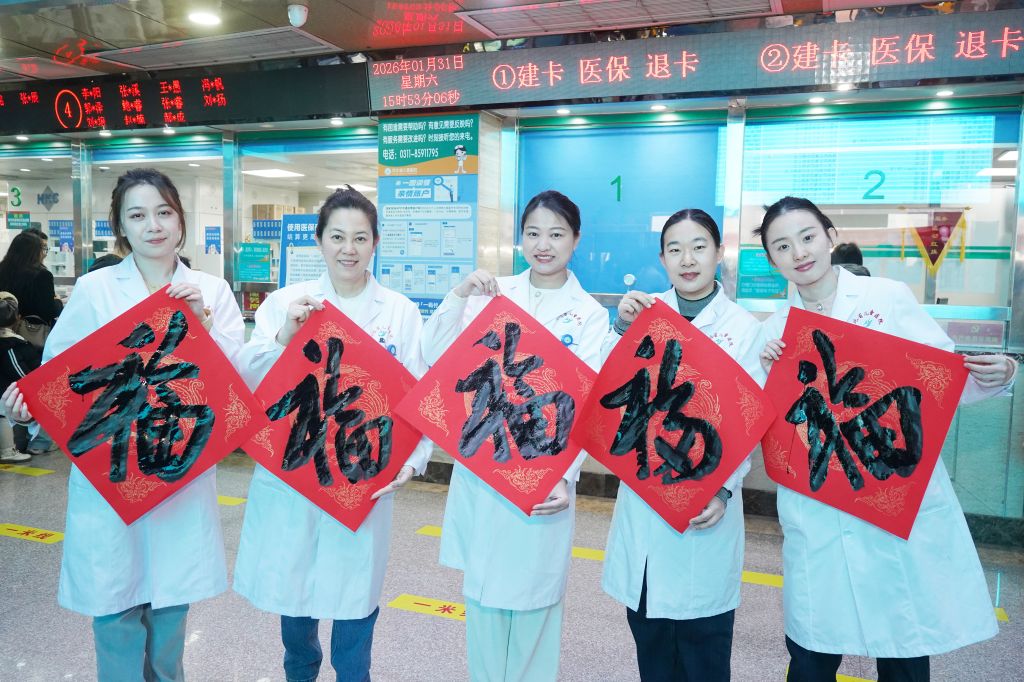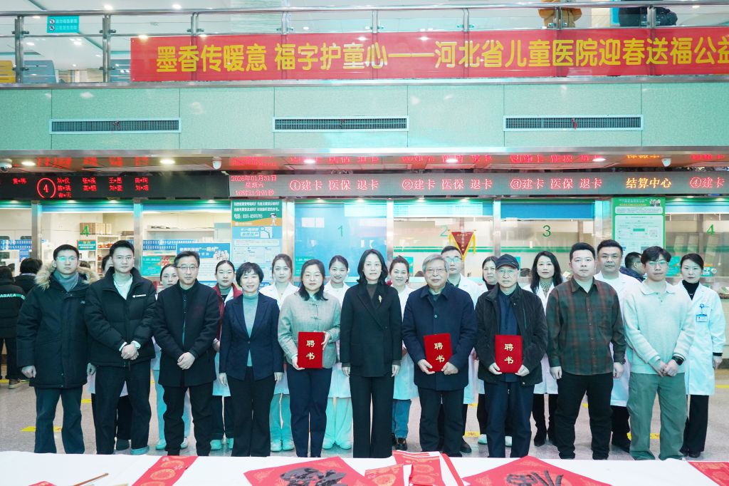 1月31日,beat365vip官网登录入口书法学院师生走进河北省儿童医院,以“墨香传暖意・福字护童心”为主题,开展了一场温馨的新春送福公益活动。活动将美育理念与社会服务深度融合,通过笔墨传递温暖,为患儿、家属以及坚守一线的医护人员送上诚挚的节日祝福和美好期盼,让中华优秀传统文化与大美育的感染力,洋溢在医院每个角落。河北省儿童医院党委书记张新平,纪委书记、工会主席邸凤莲,以及医院部分职能处室负责人出席本次活动。