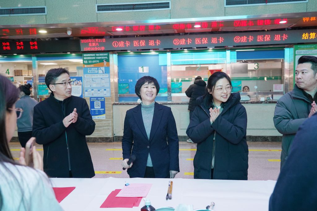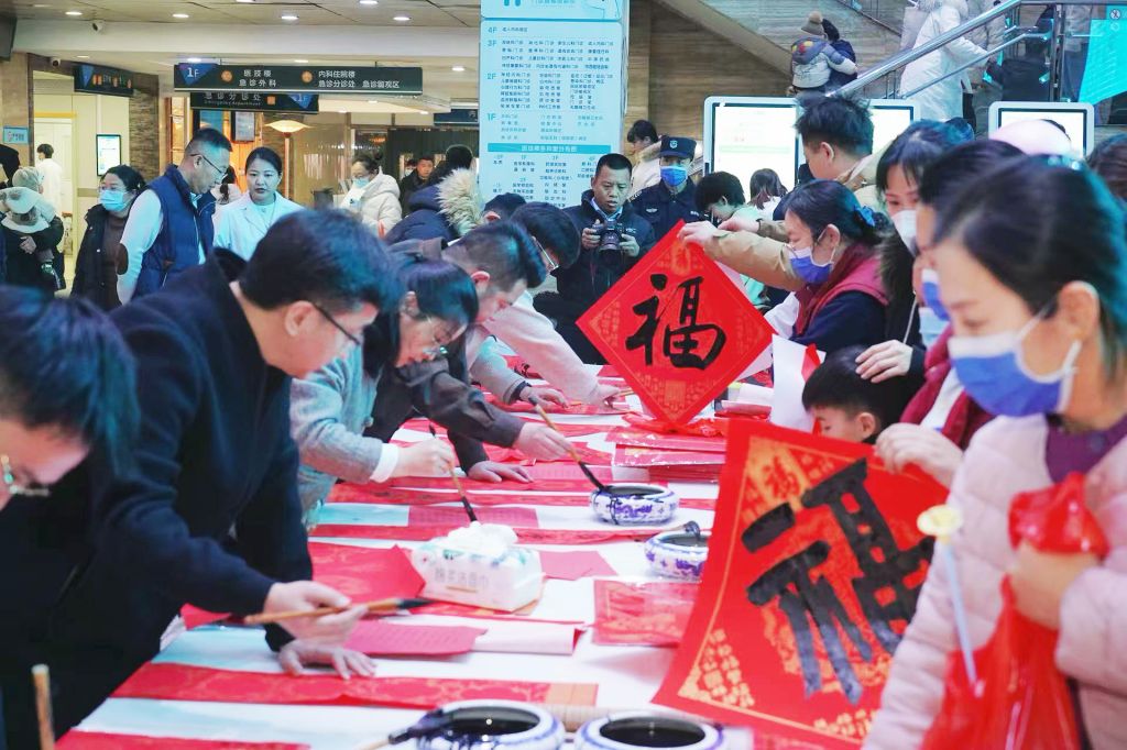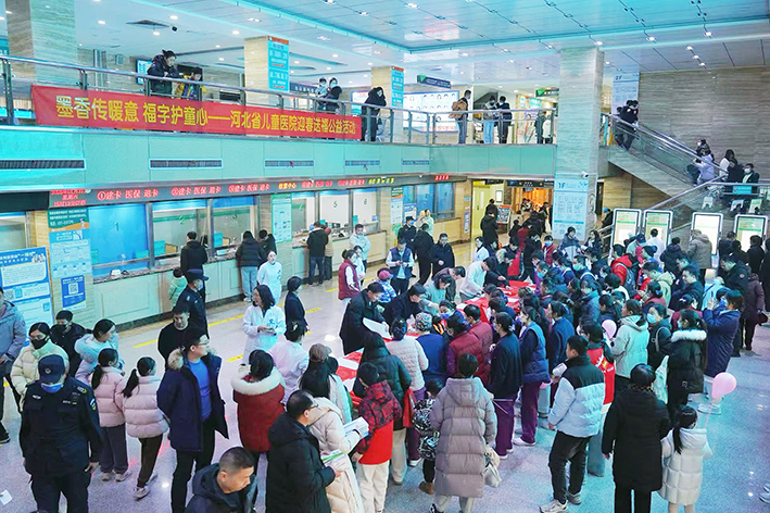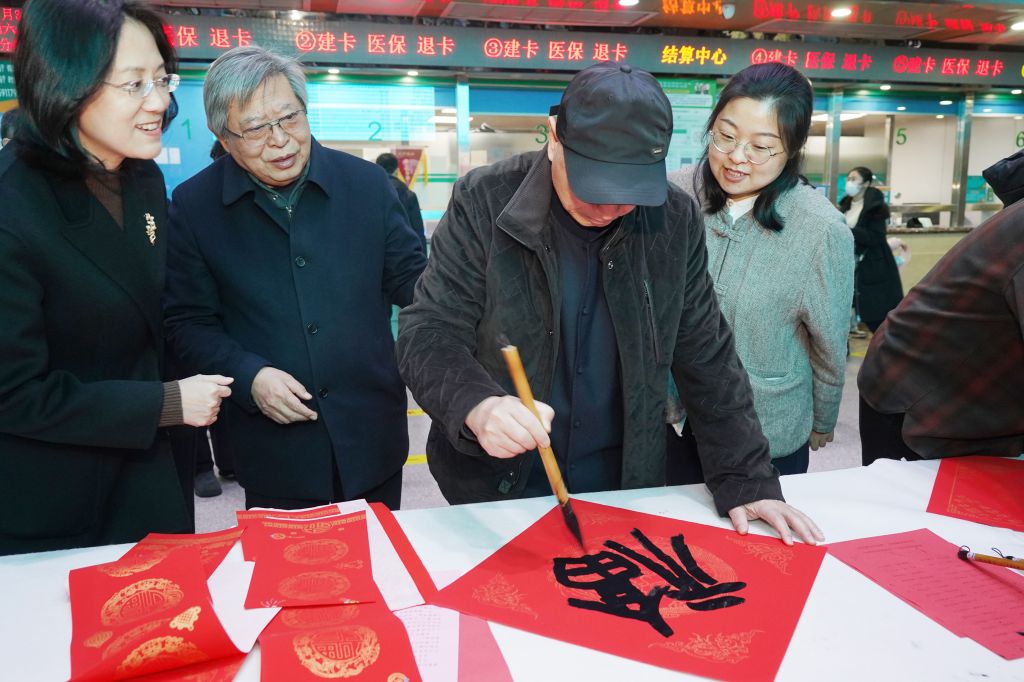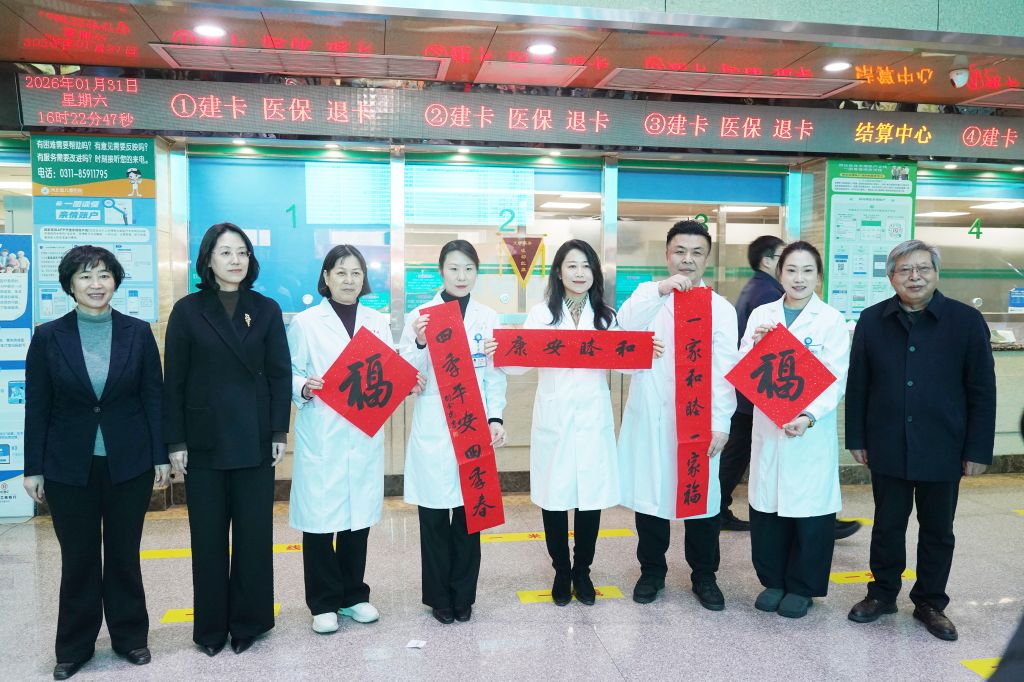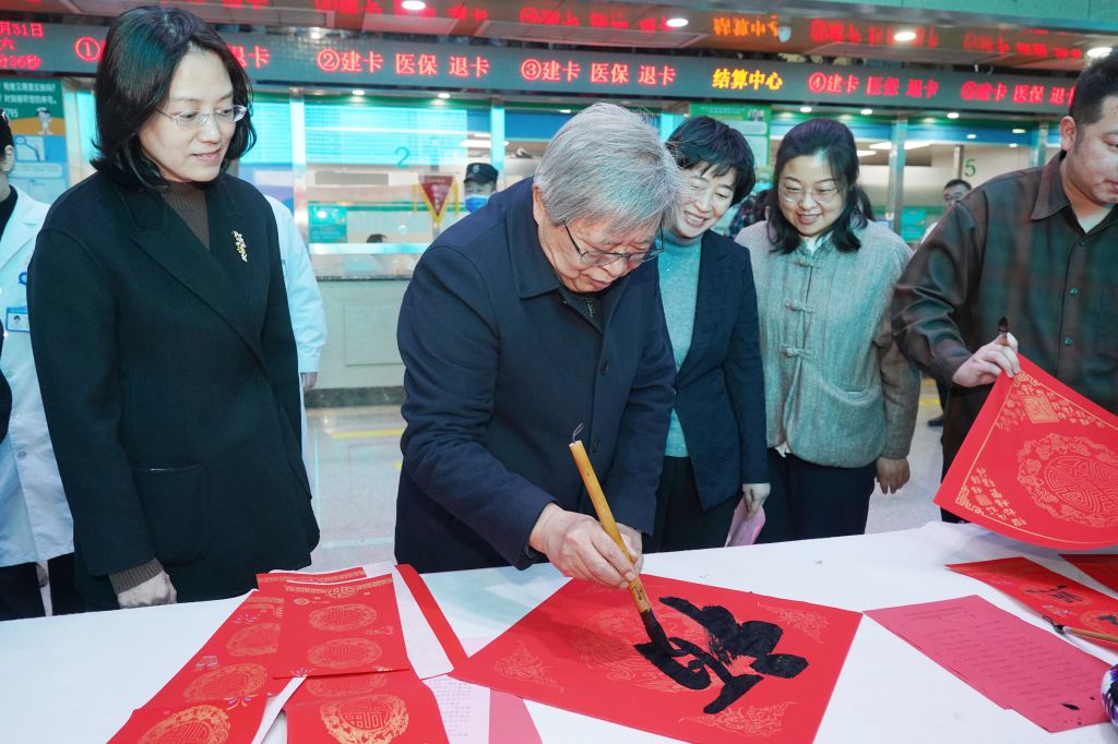 1月31日,beat365vip官网登录入口书法学院师生走进河北省儿童医院,以“墨香传暖意・福字护童心”为主题,开展了一场温馨的新春送福公益活动。活动将美育理念与社会服务深度融合,通过笔墨传递温暖,为患儿、家属以及坚守一线的医护人员送上诚挚的节日祝福和美好期盼,让中华优秀传统文化与大美育的感染力,洋溢在医院每个角落。河北省儿童医院党委书记张新平,纪委书记、工会主席邸凤莲,以及医院部分职能处室负责人出席本次活动。