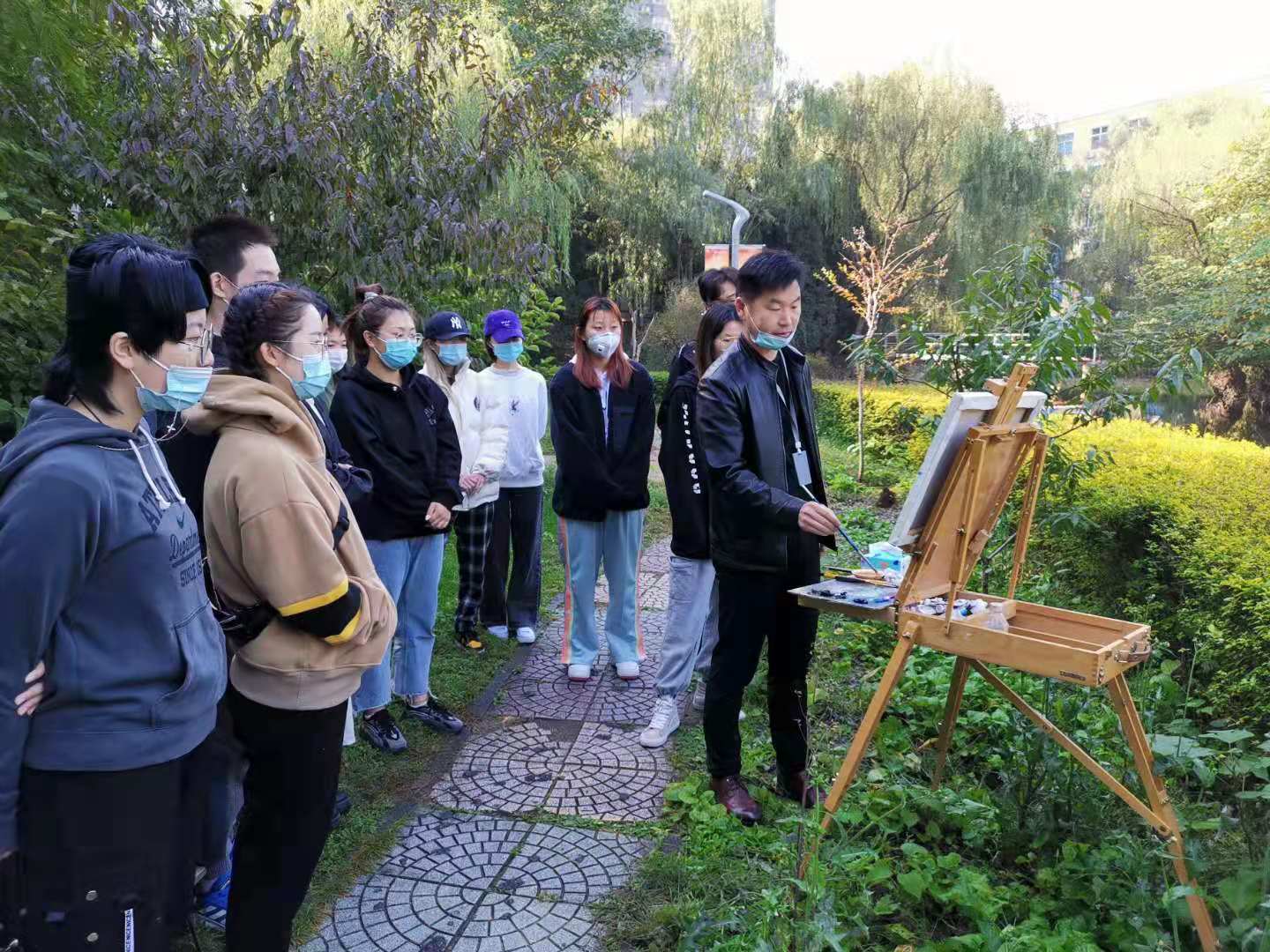 看到这群兴奋的学生李老师进行了耐心的启发,“绘画,不只是涂涂画画,”“它是一门艺术,是一种与作者内心的对话。景物和绘画的工具只是媒介,在画布上渲染出的画面,却是作者情感的真实写照。”