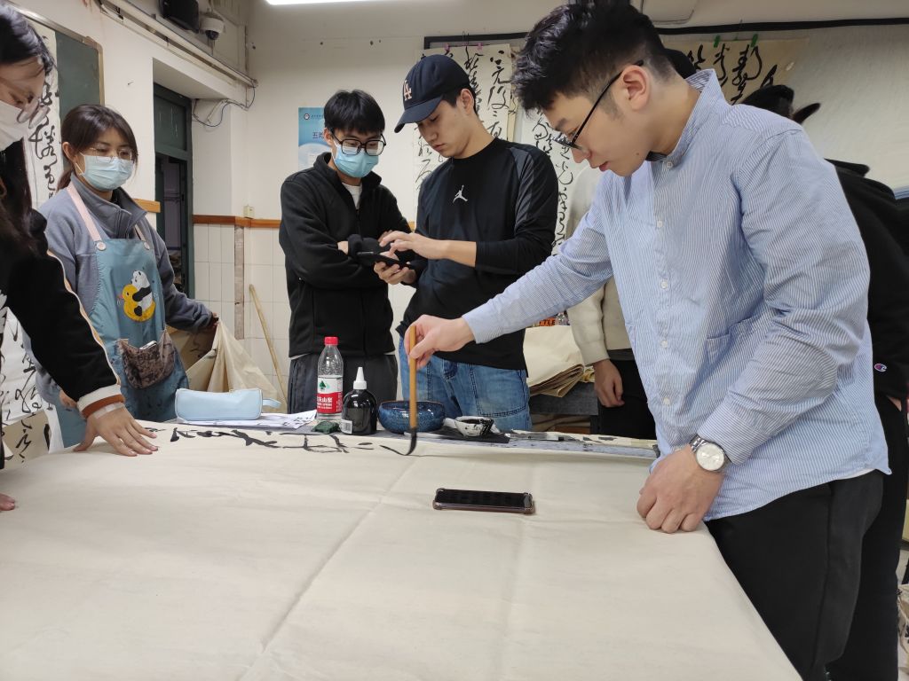 李杰同学经常在课余时间跟薛老师讨论书法方面的问题,交流他自己的想法与见解,几乎每次交流都是一次激烈的讨论,李杰同学也总能提出很多独特的想法。