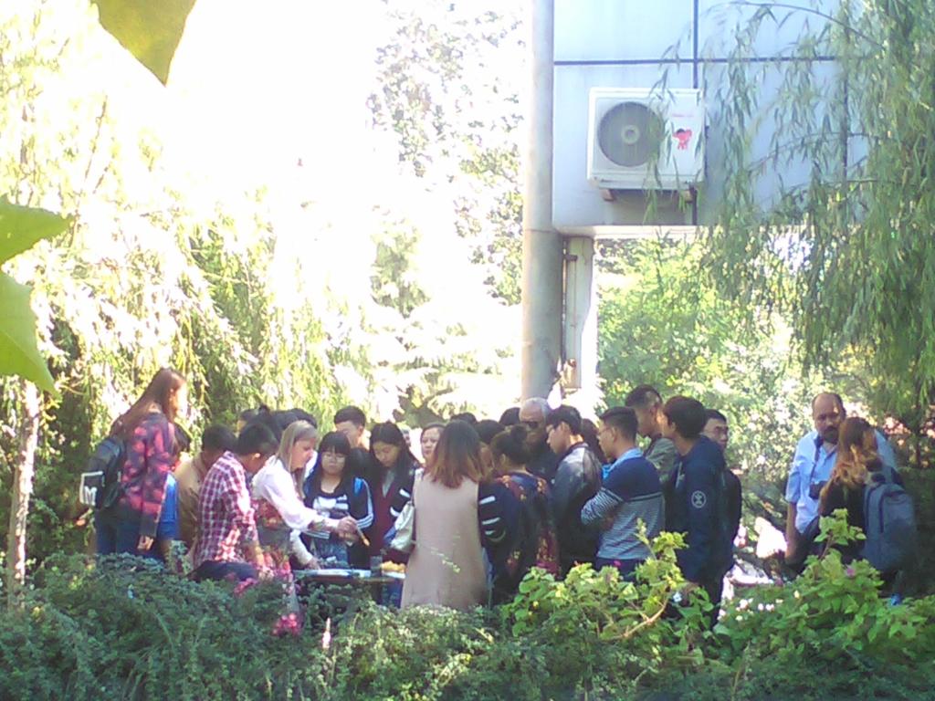 讲座结束后,谢苗•玛利亚•亚历山大教授把学生带到校园,现场绘制的建筑风景写生水彩示范画,赢得了同学们的阵阵喝彩。