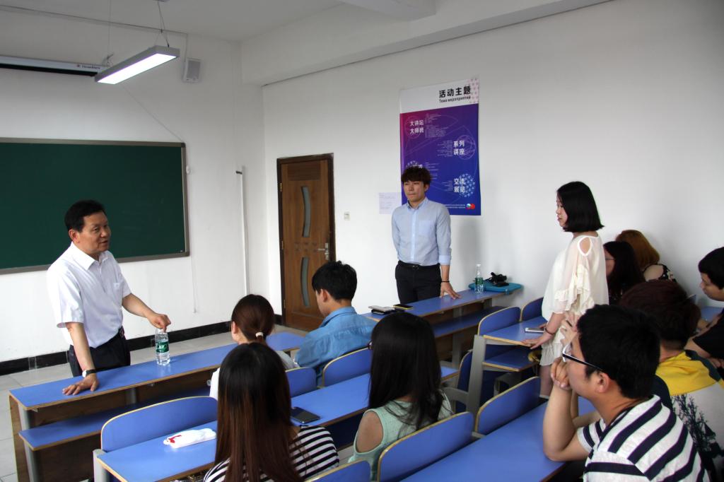 在国际教育学院公共课教室,朴部长与国际教育学院中韩国际班学生进行了亲切交流。朴部长向学生就韩国湖南大学的办学状况、奖学金政策及在韩留学生活进行了详细的介绍。通过朴部长的阐释,增加了国际班学生对韩语学习的热情和信心。