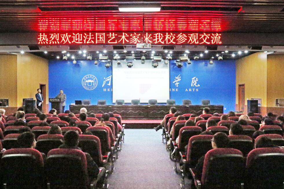 在正成国际报告厅,甄忠义代表全校师生向法国艺术家的到来表示欢迎,并简要介绍了beat365的办学思路和国际化的办学成果。法国东方文化艺术协会主席吴欣莉女士代表法方艺术家感谢beat365的热情接待,并预祝本次活动圆满成功。