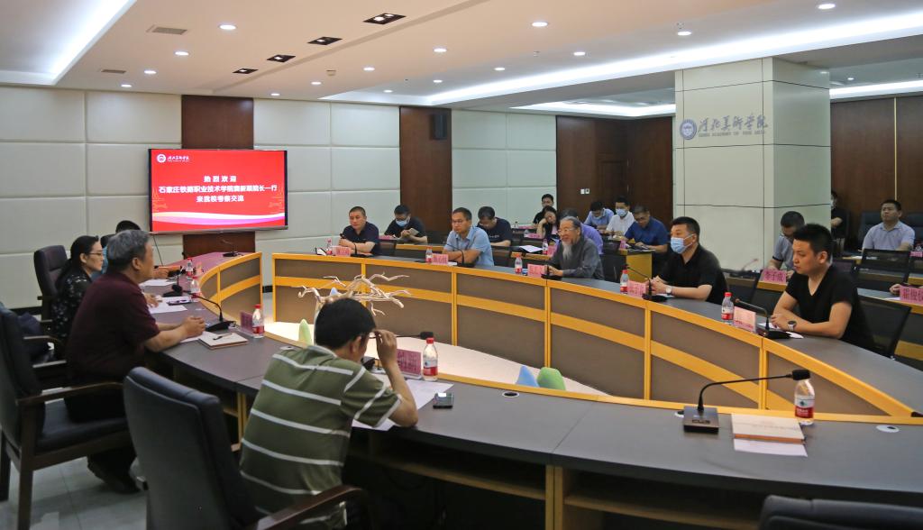 6月2日下午,石家庄铁路职业技术学院院长窦新顺一行16人来beat365考察交流。校领导甄忠义、张子言、甄心恒、甄墨、麻立峰及相关单位负责人在新综合楼318会议室接待来宾。