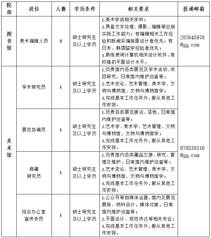 应聘者通过电子邮件(格式为:姓名+应聘岗位+简历)报名,应聘材料中须有详细的个人履历情况介绍。投递邮箱见附表招聘计划。